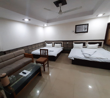 Perfect for a family the Deluxe 4 Bed A/C Rooms at Heavens Guest House, are spacious, meticulously maintained. Each of these rooms has an enchanting aura and is graced with pleasing decor and colour palettes. Round-the-clock room service is provided for the guests.